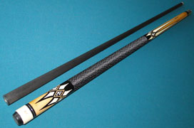 fiber shaft with phenolic cue tip. The cue butt is carbon fiber, with weight