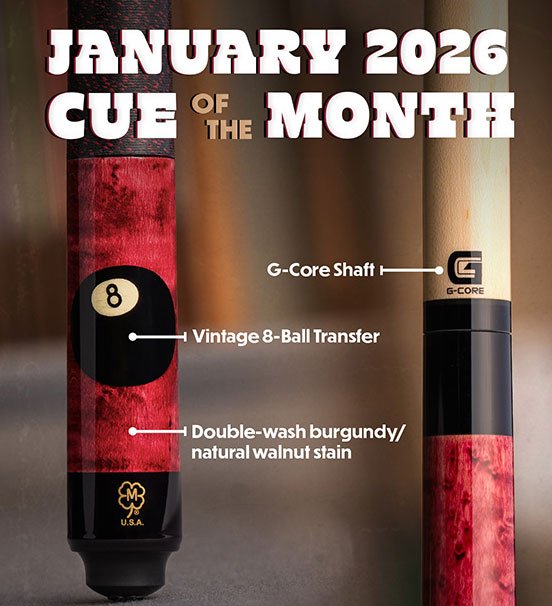 - Cues designed and made by McDermott Cues in